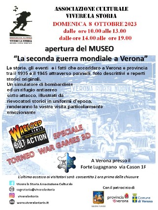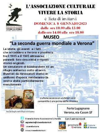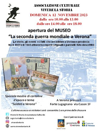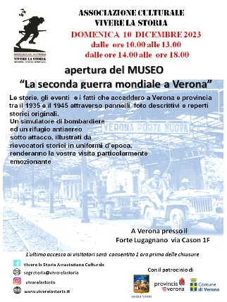 UNA VOLTA AL MESE IL MUSEO INTERATTIVO DI VIVERE LA STORIA SULLA SECONDA GUERRA MONDIALE A VERONA, VIENE REGOLARMENTE APERTO AL PUBBLICO. QUI DI SEGUITO, ALCUNE LOCANDINE DELLE APERTURE MENSILI SVOLTE