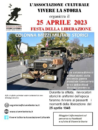 L'EVENTO PIU' IMPORTANTE DELL'ANNO, E' STATA L'ORGANIZZAZIONE DELLA SFILATA DI MEZZI STORICI IN OCCASIONE DELL'ANNIVERSARIO DELLA LIBERAZIONE DEL 25 APRILE. VIVERE LA STORIA E' STATA OSPITE DEI COMUNI DI SAN MARTINO BUONALBERGO E SAN GIOVANNI LUPATOTO RIEVOCANDO IL PASSAGGIO DEGLI ALLEATI PROPRIO SULLE STRADE STATALI CHE VIDERO PASSARE I CONVOGLI DEI LIBERATORI.