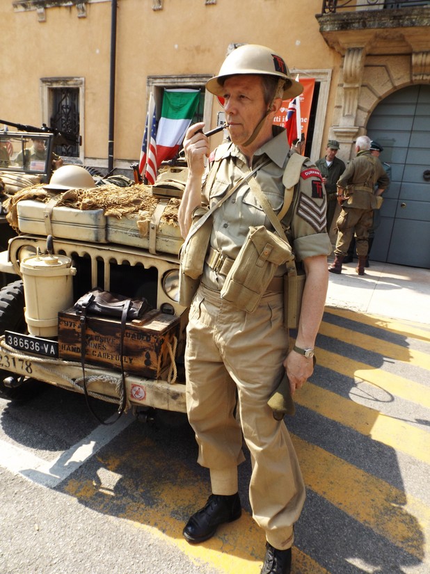 Uniforme da combattimento kaki estiva (Kaki Drill) color giallo sabbia usata in Nord Africa e nell’area mediterranea con pantaloni lunghi o con pantaloncini corti per condizioni di temperatura particolarmente elevate.