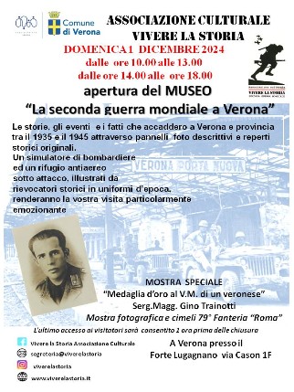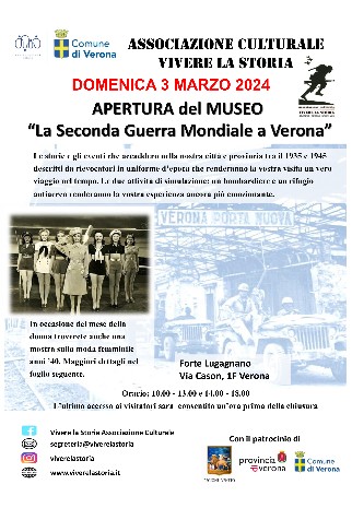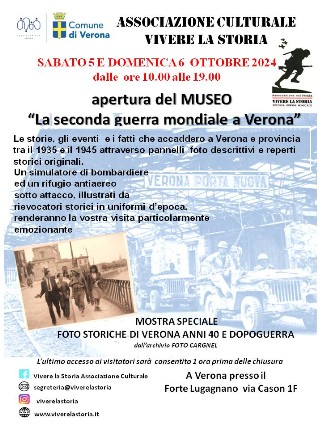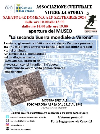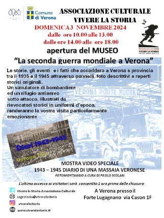 UNA VOLTA AL MESE IL MUSEO INTERATTIVO DI VIVERE LA STORIA SULLA SECONDA GUERRA MONDIALE A VERONA, VIENE REGOLARMENTE APERTO AL PUBBLICO. QUI DI SEGUITO, ALCUNE LOCANDINE DELLE APERTURE MENSILI SVOLTE